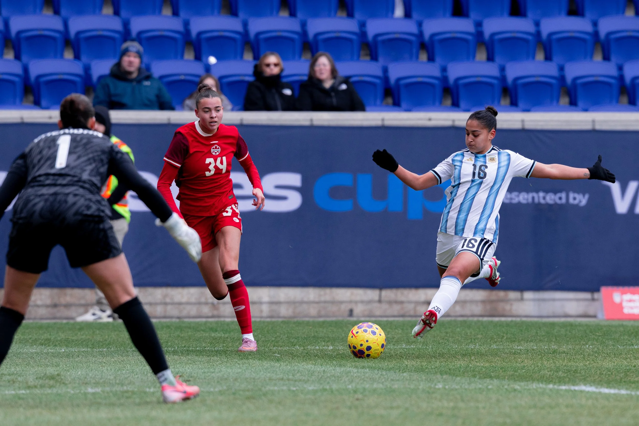 Argentina soon settled into the match and created several half-chances of their own. A sharp strike from Catalina Ongaro forced Sheridan into an early save, while a direct free kick from Sofía Domínguez later required another confident stop from the Canadian keeper.