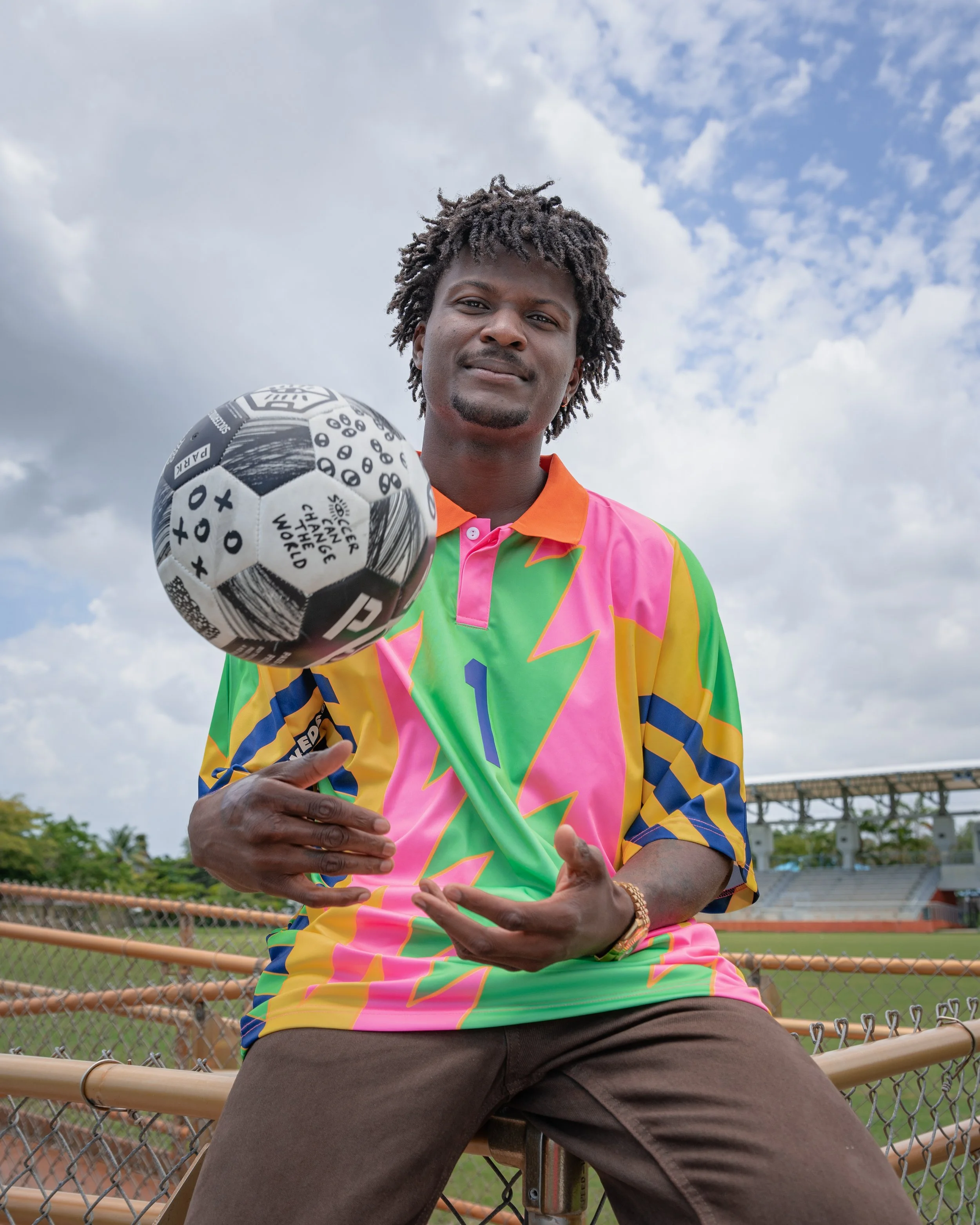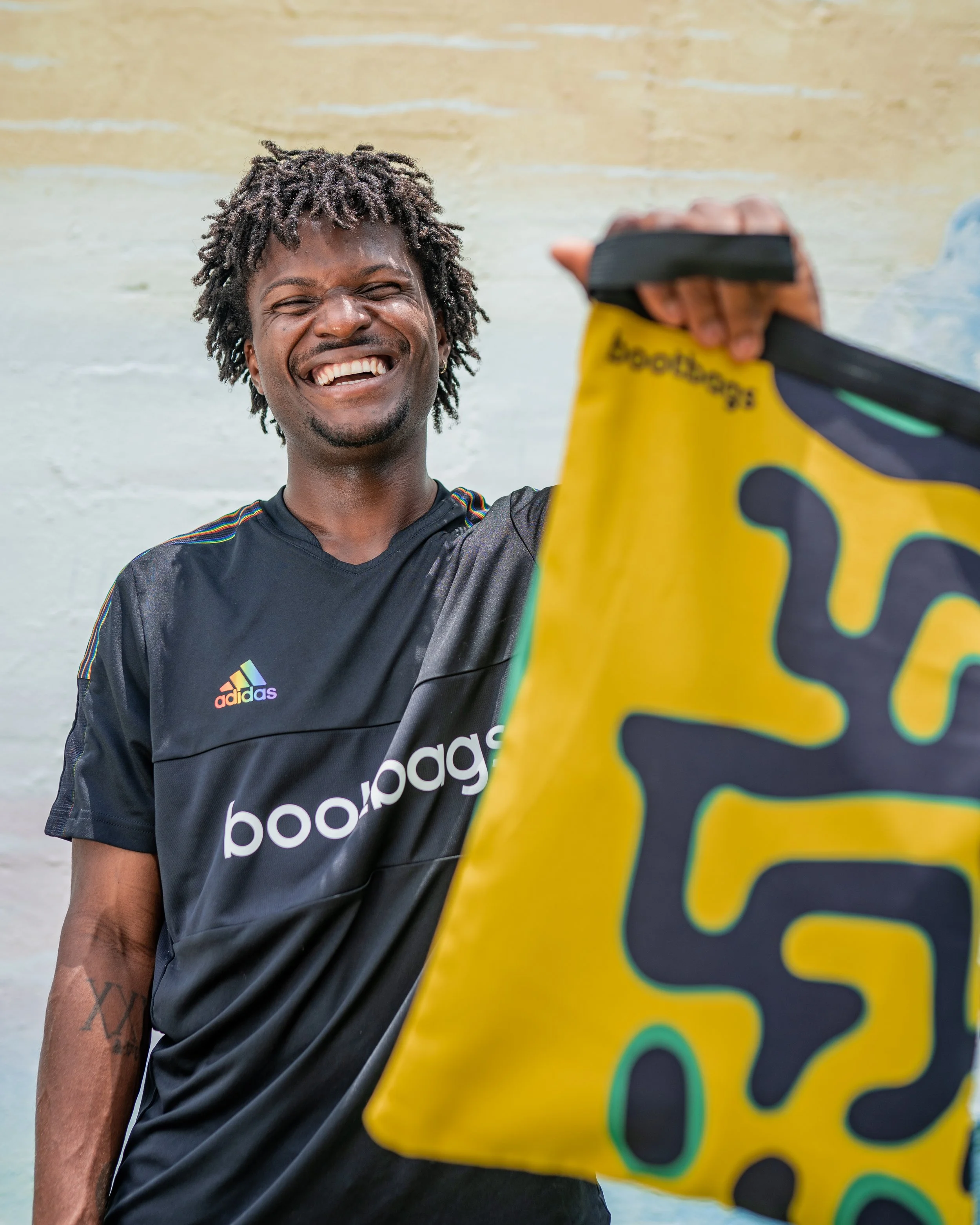 “I remember growing up in Jamaica playing with my friends at lunchtime,” he says. “We would grab empty bottles of Coke, fill them up with sand and just play with them.” Those experiences not only served as an introduction to the beautiful game, but they also made an impression on Shane that would eventually lead him to found bootbags years down the road.
