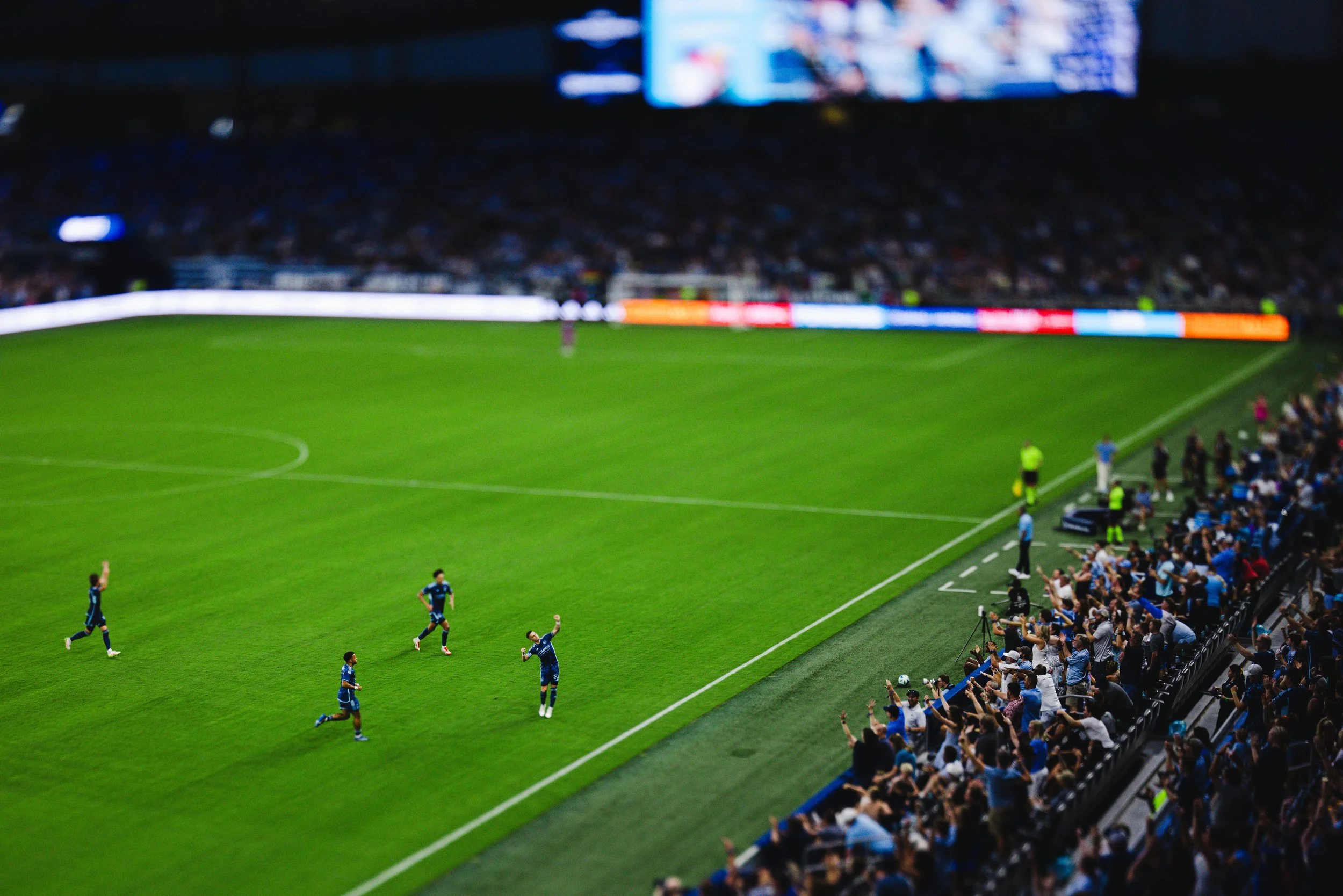 “Sporting KC forward Erik Thommy celebrates a goal with his signature bow and arrow celebration (shot with a tilt shift lens).”