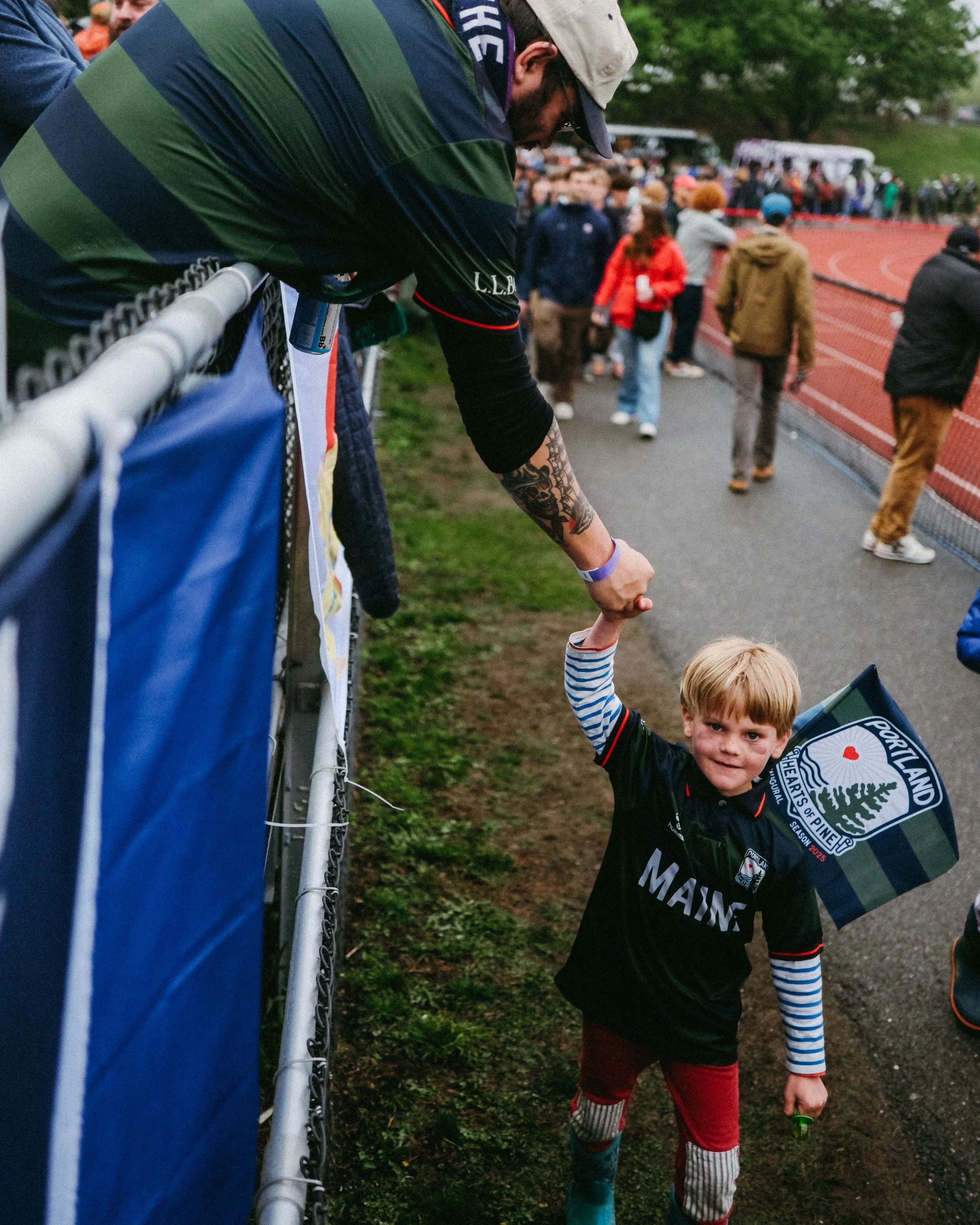 “A little season ticket holder arrives in full regalia, to support the Boys of Maine.”