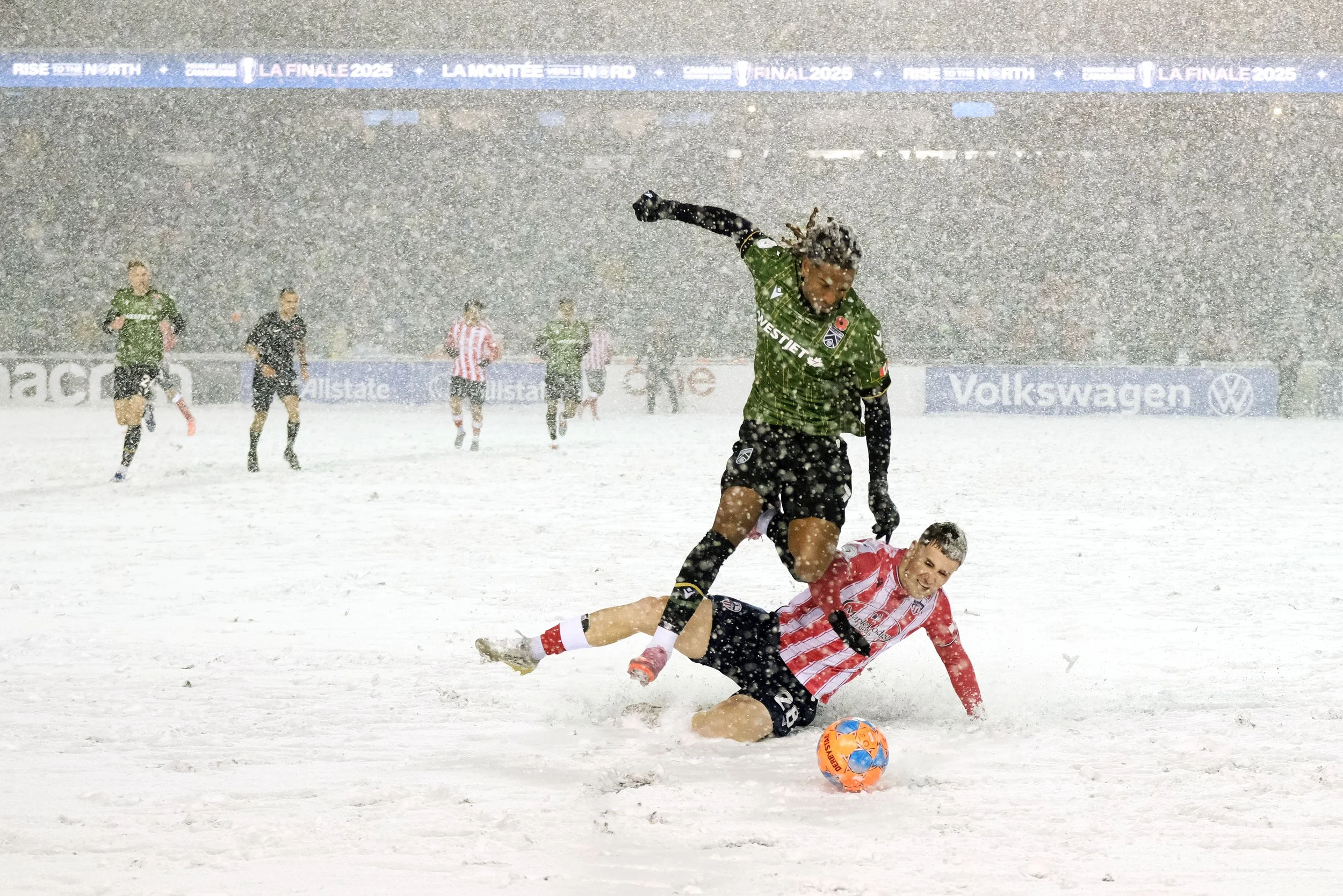 “Atletico Ottawa fan toughing out the snow storm during the historic CPL final in Ottawa on November 9, 2025.”