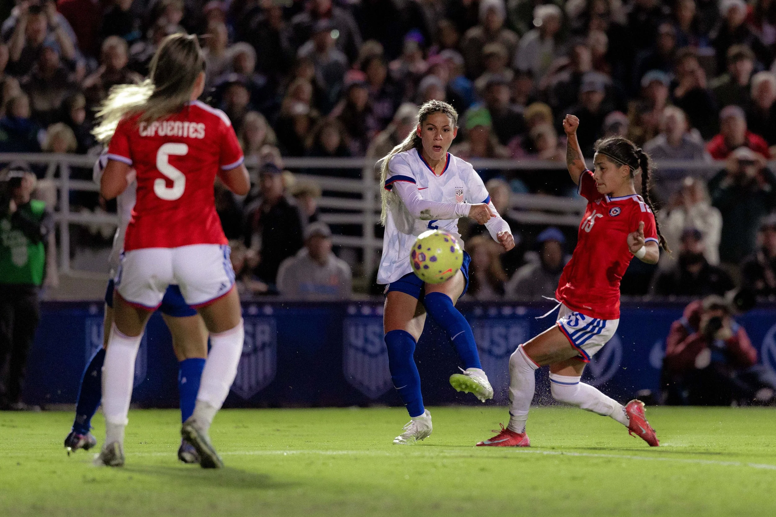 The U.S. Women’s National Team closed out its January camp with another emphatic result, defeating Chile 5–0 Tuesday night at Harder Stadium in Santa Barbara in a match defined by firsts, experimentation, and a growing sense of depth under head coach Emma Hayes.