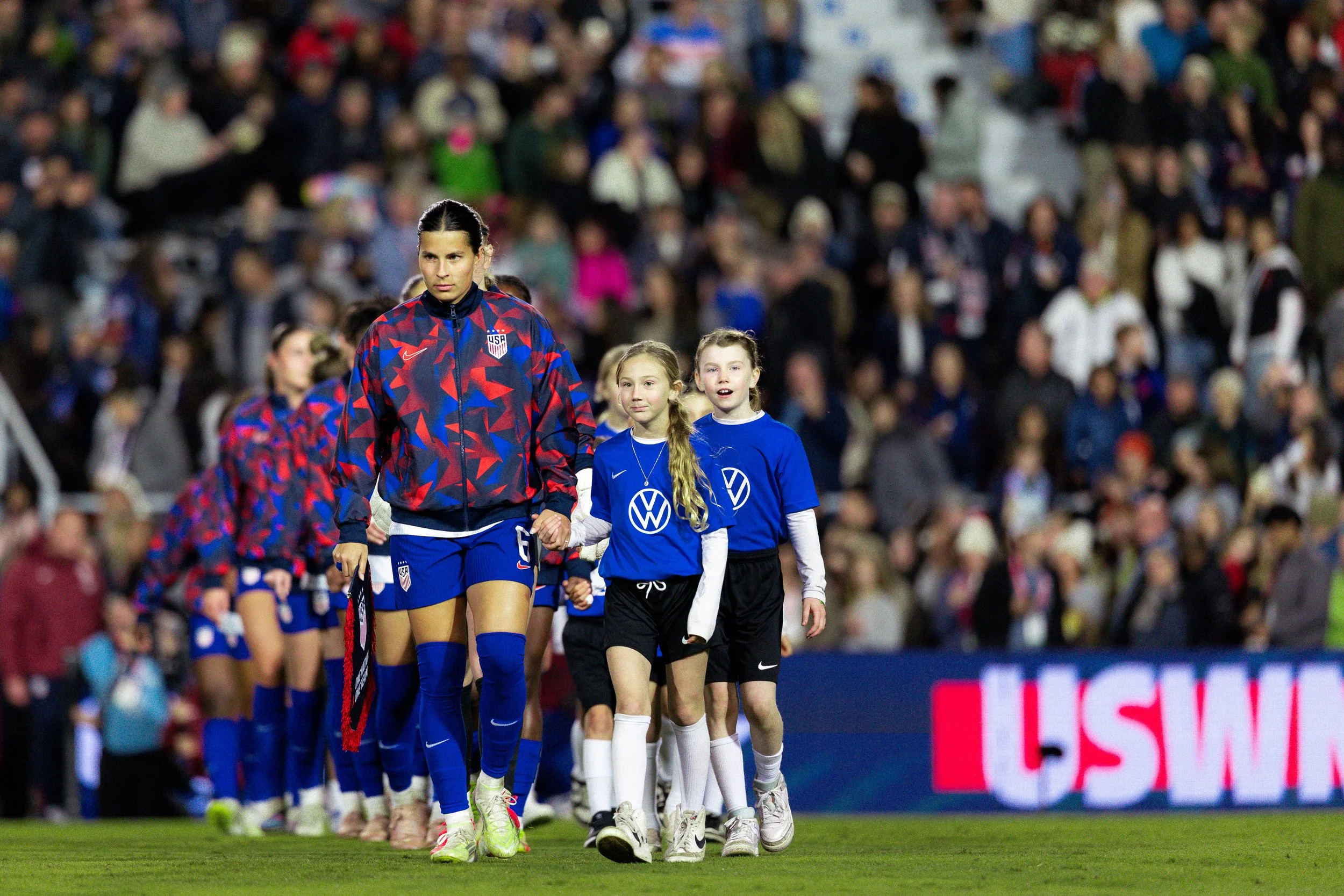 Emily Sams made it three before halftime, capping a standout night in which she wore the captain’s armband for the first time. After staying forward on a recycled corner kick, Sams met a low cross from Emma Sears and finished from close range to give the U.S. a commanding advantage at the break.