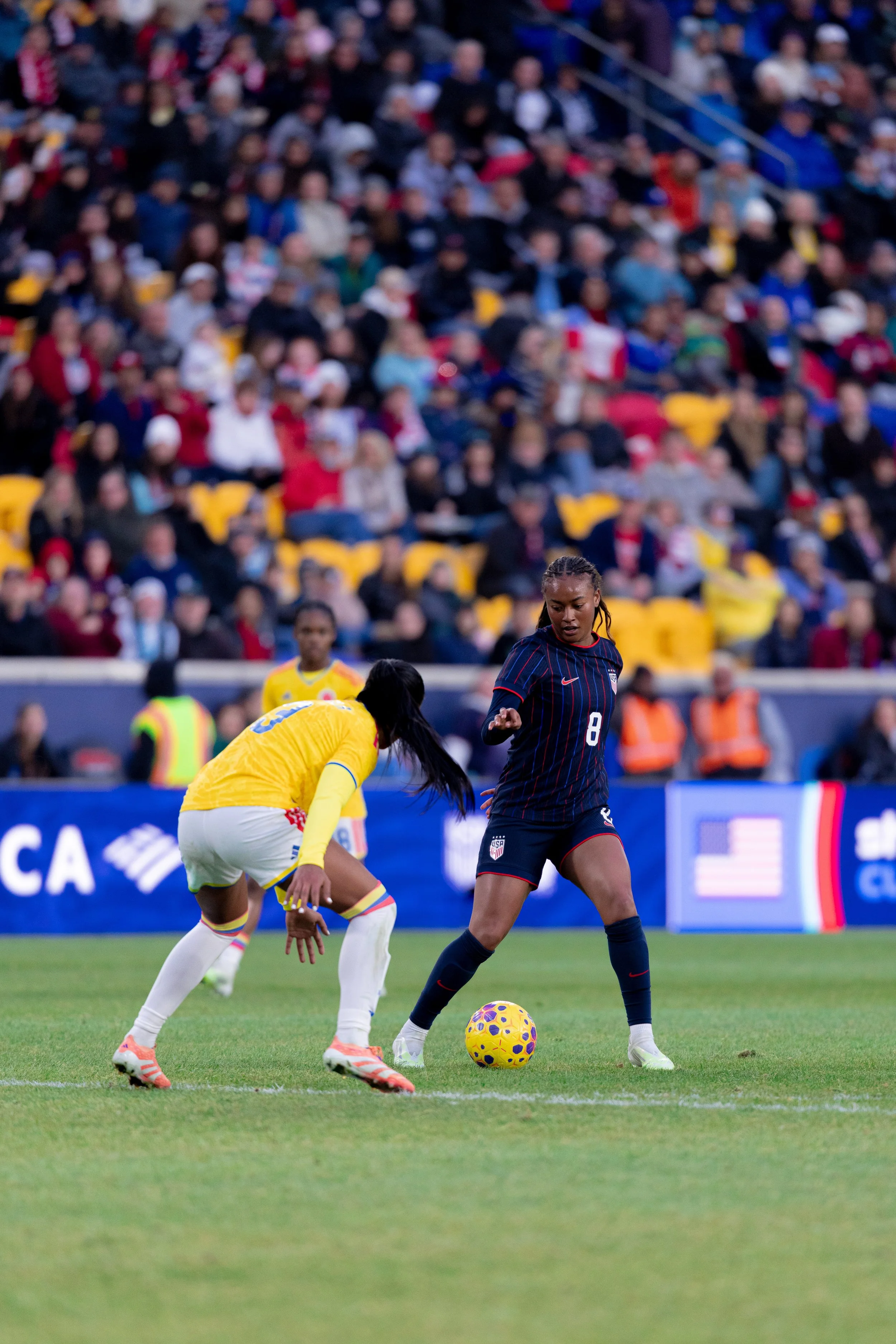 The U.S. finished the opening 45 minutes with just a single shot on target. Meanwhile, Colombia generated the more dangerous looks early, including a looping volley from Manuela Vanegas that drifted just over the crossbar and a handful of half-chances that kept goalkeeper Phallon Tullis-Joyce alert.